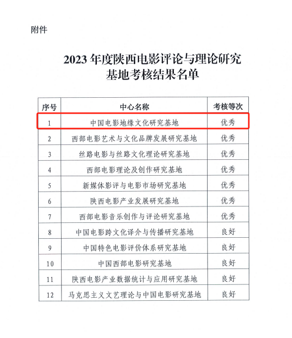 近日,中共陕西省委宣传部公布了2023年度陕西电影评论与理论研究基地考核结果,全省共有12家单位参加考核。k1体育“中国电影地缘文化研究基地”表现突出,成果丰沛,通过全年多次细致梳理与成书修订,通过基地材料审核和公开答辩等多个环节,最终在考核中荣获“优秀”等级。