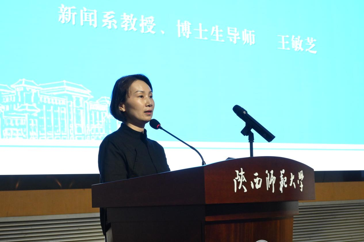 新闻系教授、博士生导师王敏芝老师作为教师代表发言。她寄语立足新起点的同学们“快快长大”,成为对自己负责、勇担职责使命的人;学思结合,精研专业,认真学习专业知识,并将所学付诸行动,做到知行合一。