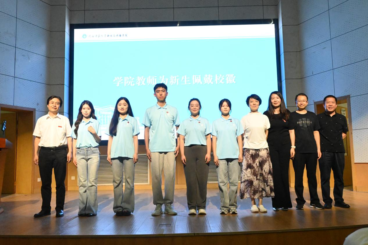 公司领导班子成员、教师代表为新生佩戴校徽,共同见证新一届新传学子开启在k1体育的逐梦之旅。