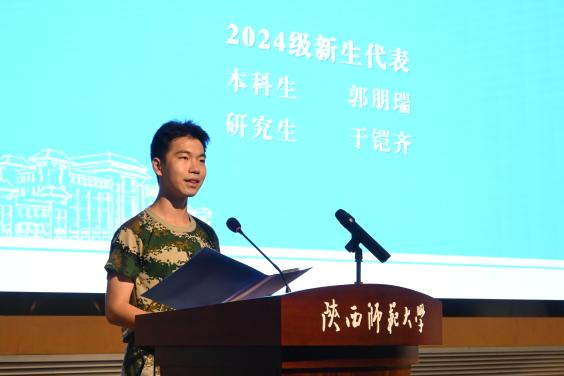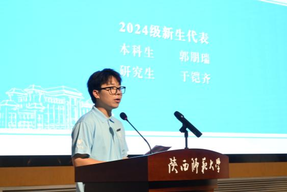 2024级本科生代表郭朋瑞、研究生代表于铠齐,分别讲述了自己求学的故事,表达了对新闻理想的不懈追求,阐释了对“薪火相传”的理解,并代表2024级新生表达了对新学段新生活的美好期待。