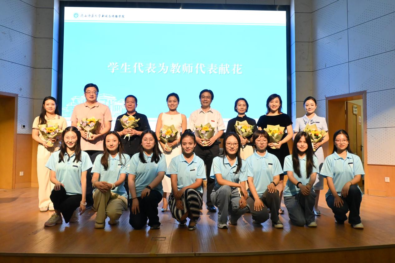 2024年是第40个教师节,为积极贯彻“弘扬教育家精神,助力教育强国建设”的教师节主题,厚植教育情怀,涵养高尚师德,公司努力营造尊师重教氛围,在官网和电子屏宣传教师节主题,并专门邀请新闻系教授、博士生导师王敏芝为2024级新生讲授开学第一课。2024级新生代表为公司教师代表献花,向老师们表达节日的祝福,感谢老师们无微不至的关怀和对教育事业持之以恒的付出。未来,公司将持续加强人才和队伍建设,坚持以马克思主义新闻观和马克思主义文艺观铸魂育人,为培养具有家国情怀、国际视野的创新性高素质全媒化复合型新闻传播后备人才而努力奋斗。