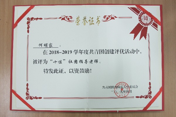 演讲与口才协会指导教师余海龙,谈弈辩论社、华语辩论队指导教师何明家被评为“十佳”社团指导教师,公司员工会新媒体中心被评为“新媒体建设先进集体”,2017级新闻学斯诺1班团支部、2018级新闻传播学类1班团支部、2018级新闻传播学类3班团支部被评为“五四红旗团支部”,2017级新闻学斯诺1班团支部还被评为“校级示范团支部”并在纪念五四运动100周年文艺晚会暨共青团表彰典礼上接受表彰。