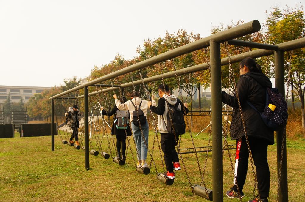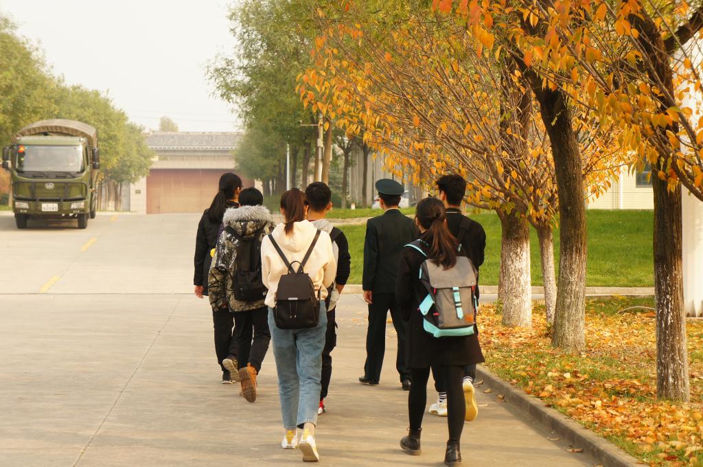 在火箭军工程大公司园里,佩戴团徽的新传学子不仅在教官的带领下参观了校史馆、员工宿舍楼、风雨训练馆与武器陈列馆,还亲身体验了400米障碍训练场的一些基础项目。