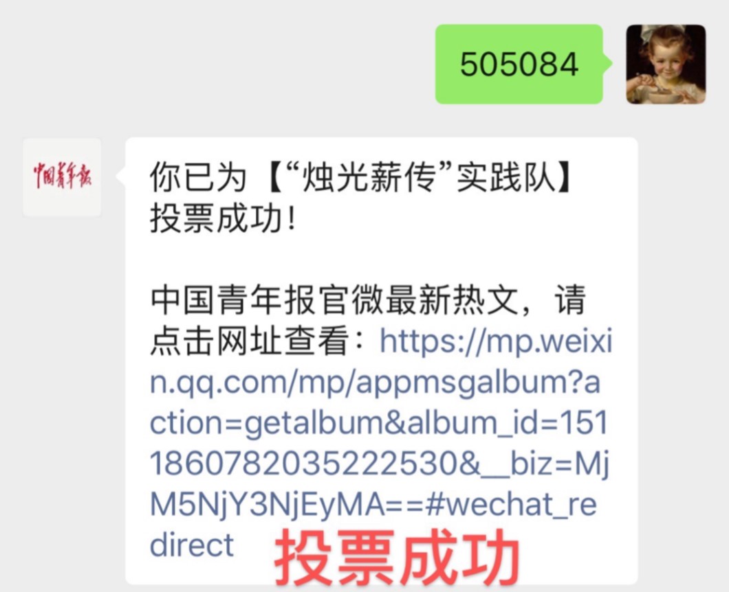 在2020年暑期“三下乡”社会实践活动中,公司涌现出一批优秀团队,“烛光薪传”实践队经过层层选拔,成功入围中国青年报“2020第六届寻找全国老员工百强暑期实践团队”候选名单,现已进入面向全社会公开进行的网络投票阶段,请广大同学对“烛光薪传”实践队进行网络投票支持,感谢支持!