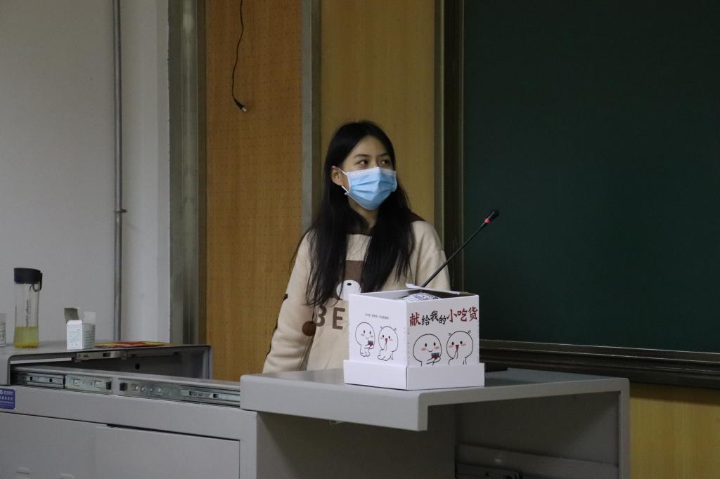 “今天是2020年10月25日,62年前,党史上的今天,宁夏回族自治区成立”周杨洁同学站在讲台上动情地说,“而我,就来自宁夏。”作为党史学习小组的成员,周杨洁同学主要分享了从1956年2月中共中央提倡建立省级回族自治区到1958年10月25日宁夏回族自治区正式成立这一段时期的历史故事,并结合自身体会讲述了宁夏这些年在党的领导下的稳步发展。之后,新中国史学习小组的谭缘华同学与改革开放史学习小组的冯真宁同学分别结合中国人民志愿军抗美援朝出国作战70周年、深圳经济特区建立40周年讲述了那一时期的故事,分享了自己的学习成果。社会主义发展史学习小组的郭小可同学则从空想社会主义说起,简单概述了社会主义的兴起、发展和中国化。