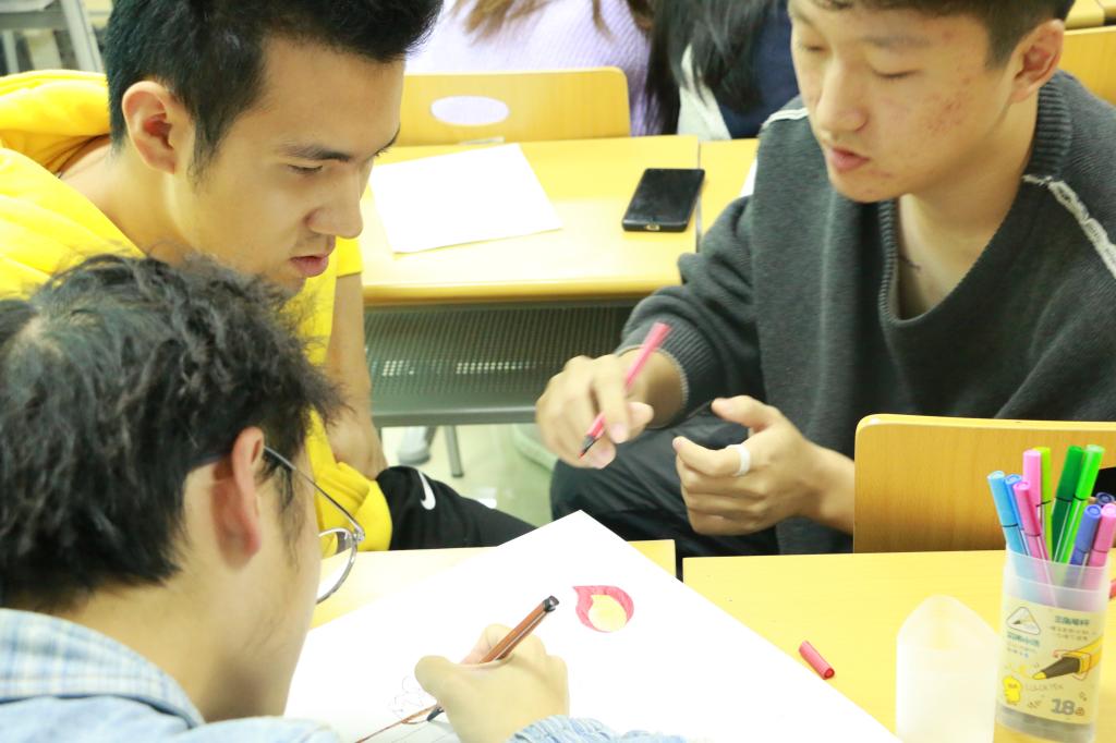 接着,各小组开展小组活动。本次活动以绘画的方式为主,将红烛精神内涵的16个字与书本、蜡烛、园丁、太阳等元素相结合,创作以“教师”为主题的艺术字。开始制作前,付一扬同学展示了她设计的“于”字,别出心裁的蜡烛造型打开同学们的思路。随后各组自行设计,同学们踊跃参与,积极讨论,发挥特长。最后,每组派出代表进行展示。各小组的作品形式新颖,充满奇思妙想,其中第7组设计颇具未来感。该组代表吴昕洋同学介绍到:“我们小组的设计结合了电影《2001太空漫游》中的元素。寓意着,老师就像太阳,我们则是群星,坐落在校园的宇宙,在班级的星系中旋转。老师给予我们光芒与温暖,融化了暗处的寒冷。”他的发言赢得了同学们热烈的掌声。
