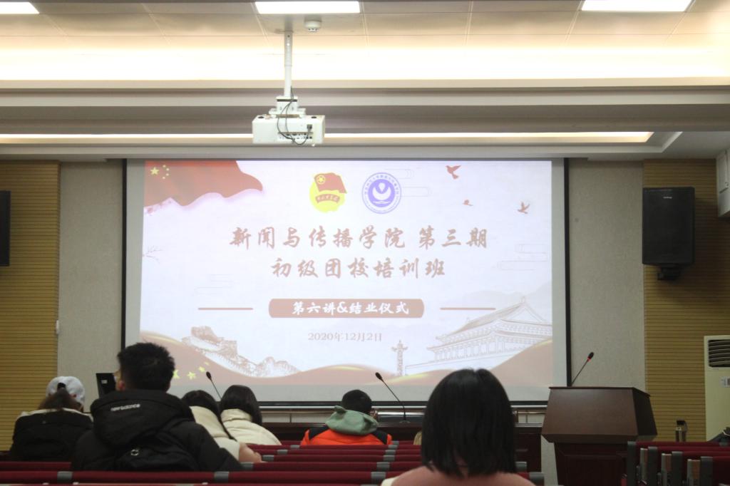 在结业仪式上,团委副书记郑敬凡总结了本期团校培训班工作;优秀学员何苗苗作为学员代表,发出了“通过本次团校学习,明确了作为一名共青团员的责任和使命”的感悟;与会师生共同观摩了新传院版“青年大学习”优秀视频;刘炜老师为本期团校优秀学员颁奖,并鼓励学员们发奋学习,学习政治理论知识和专业知识,学习身边典型模范,做优秀的团员、团干部。