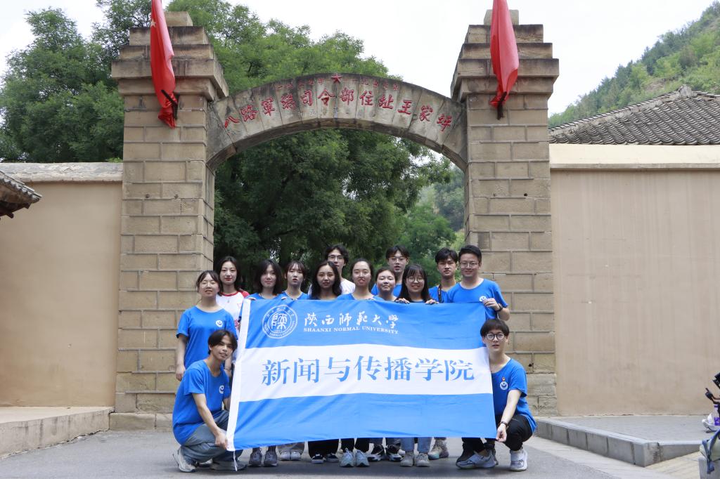 实践队成员首先前往杨家岭革命旧址开展活动。杨家岭革命旧址曾是中国共产党中央委员会驻地,毛泽东与美国记者斯特朗谈话的地方引发了队员们的关注。延安时期,中国共产党以坚持抗战、开放包容的胸怀吸引了一大批国际友人,他们积极宣传中国共产党的抗战主张,并报道中国抗战的实际情况,为延安走向世界架起了桥梁。对此,向先枫同学说:“学习中国共产党在杨家岭开展的新闻传播工作,为今后的专业实践提供丰富经验,是我们在杨家岭革命旧址进行学习实践的主题。”